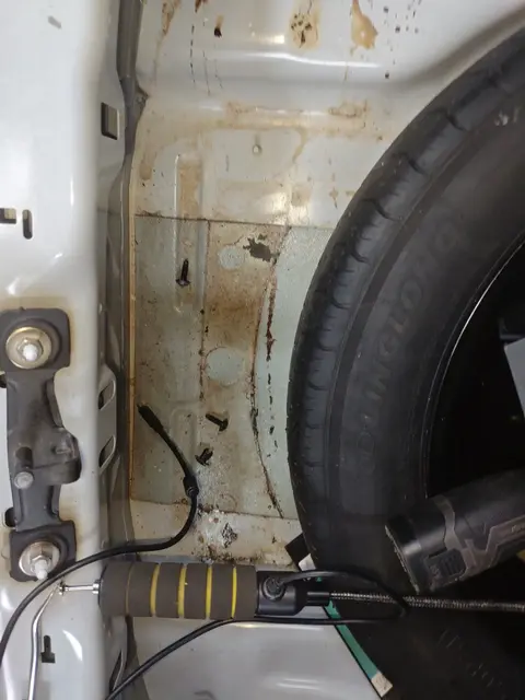 接下来,我们深入事故检测排查的部分。这款车型在水箱框架处显示出拆卸痕迹,左A柱封边经历了喷漆修复,而后备箱底板则留下了水痕。这些主要是部件修复或者更换留下的痕迹,并不意味着车辆经历过重大事故或水泡。尤其是水箱框架的拆卸痕迹,可能是因为之前车主更换水箱框架留下的;左A柱封边的修复,则是一个比较常见的钣金修复工艺,主要是为了修复柱封边的损伤或划痕,提高车辆的外观美观性和结构稳定性;后备箱底板的水痕,可能是因为车辆停放在潮湿环境中或者洗车后未完全干燥就停放起来留下的。虽然这些都算车辆瑕疵,但是整体并不影响车辆的安全性能。