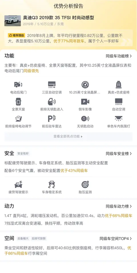 我们要介绍的这辆奥迪Q3 2019款 35 TFSI 时尚动感型目前售价为11.58万元。接下来,让我们一起深入探索这辆二手车的各项特点与性能表现吧!
