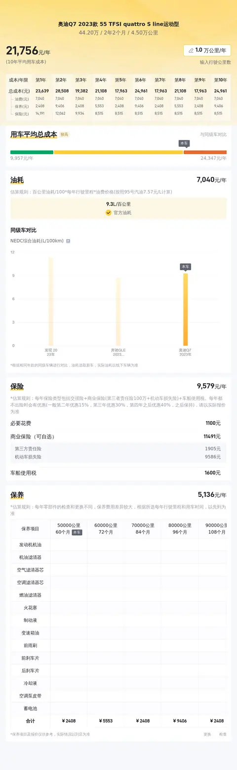目前这款车的市场行情价为39.72万-47.21万,具体的价格要看车况表现,这辆车的报价处于合理的范围内。按照懂车帝对奥迪Q7 2023款 55 TFSI quattro S line运动型的综合分析,这款车在动力性能、安全配置、内部空间等方面均表现出色,是一款值得推荐的豪华中大型SUV。如果您正在寻找一款既能满足家庭需求又能彰显个性的车型,那么这款车或许是一个不错的选择。
