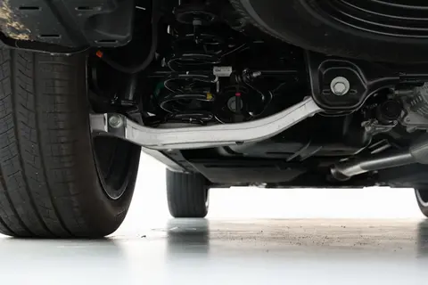 大尺寸的立体宽体进气格栅里装了横幅式镀铬条,比老款的点阵式看着更精致,再加上银色的前包围,整体风格接近一些豪华 SUV 的质感。车身侧面的线条很平直,从车头一直延伸到车尾,立体的轮拱配上 20 英寸轮毂(轮胎规格 255/50 R20),显得很有力量。D 柱和车窗框架的镀铬饰条相互呼应,侧裙的镀铬装饰也让车身多了些精致感,不会让人觉得硬派 SUV 就只能走粗犷路线。
