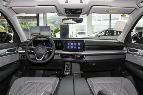 揽巡的内饰比较传统优雅,“T”字形中控台,配备了带换挡功能的真皮方向盘,搭配传统的电子挡把,操控方便。而10.25英寸的仪表盘,采用彩色全液晶屏幕,搭配12英寸的中控屏,让车内更有科技氛围,中控屏支持4G网络、主驾语音识别、应用下载等功能。而哈曼卡顿的音响的加入,让导航和听音乐,声音更带质感。其次,车内还配备了HUD抬头显示系统、15W手机无线充电面板、自动防眩目内后视镜、30色氛围灯等配置,以供驾乘人员使用。