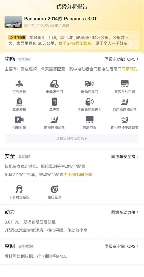 这款保时捷Panamera以其出色的驾驶性能、豪华配置和精致工艺,赢得了广泛赞誉。它适合追求高品质生活、热爱驾驶的人士,无论是商务出行还是日常代步,都能展现出车主的不凡品味。然而,作为一款高性能车型,其维护保养成本相对较高,且油耗可能较大,这些因素需要潜在买家在购买前予以充分考虑。