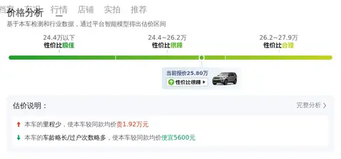 市场行情部分,我们通过懂车帝的大数据分析,目前这款二手路虎发现的市场价格在26.65万至32.55万之间。具体的售价会受到车辆状况等因素的影响,而您所看到的这辆车,售价为25.8万,在市场中处于较低的水平,是一个不错的选择。