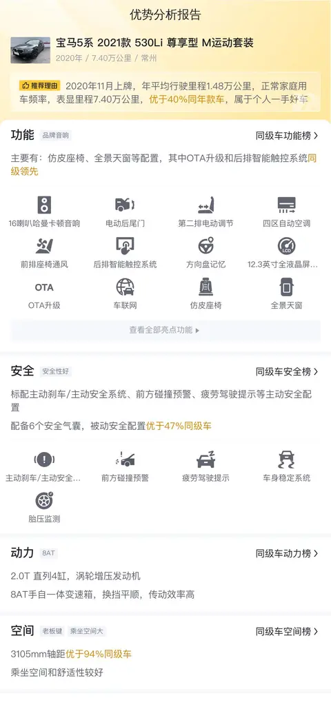 综上所述的新车含税价、用车成本、市场行情、优势分析、同款比价等数据仅供参考。在配置部分,因为二手车非标品,车辆可能会存在配置改装的情况,具体车况信息需要线下结合车辆实际情况进行综合参考。