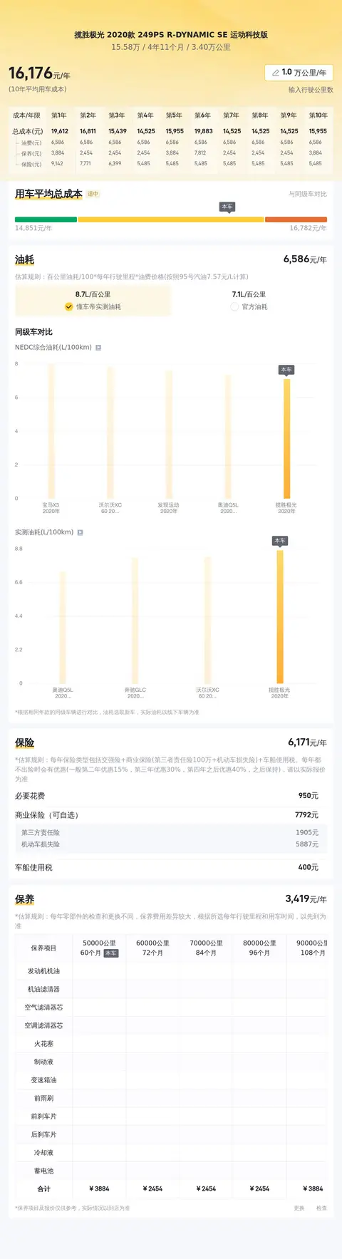 综上所述的新车含税价、用车成本、市场行情、优势分析、同款比价等数据仅供参考。在配置部分,因为二手车非标品,车辆可能会存在配置改装的情况,具体车况信息需要线下结合车辆实际情况进行综合参考。