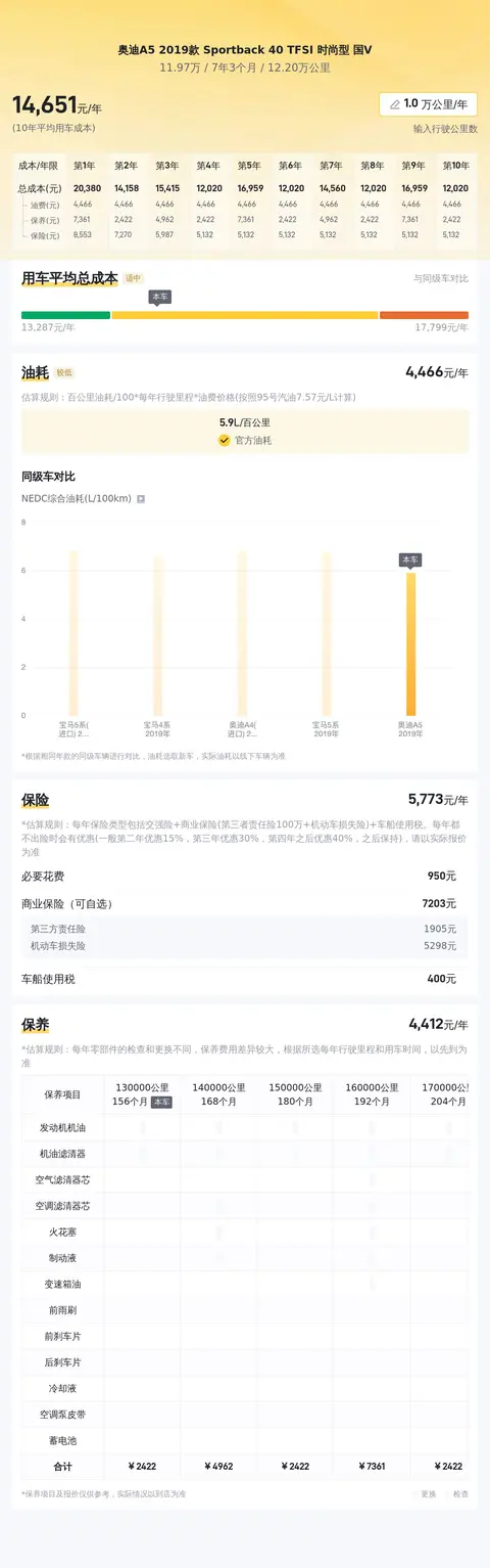 关于用车成本,我们估算了一下,从图片中您可以了解到具体详情。