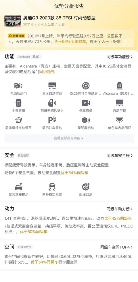 综上所述的新车含税价、用车成本、市场行情、优势分析、同款比价等数据仅供参考。在配置部分,因为二手车非标品,车辆可能会存在配置改装的情况,具体车况信息需要线下结合车辆实际情况进行综合参考。