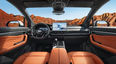 进了车里,整体风格还是吉利那套简洁实用的路子,不过细节上花了心思。门板上的绗缝线更精细了,配色也多了选择,暖阳棕看着温馨,月影灰则更稳重些。中控还是14.6英寸的大屏,三辐方向盘也没换,但系统升级了,上了Flyme Auto智能座舱,人机交互这块应该比之前顺手不少。配置方面,高配车型会带前后摄像头、天窗、雷达这些,实用性拉满。