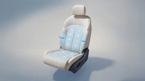 这款座椅的智能功能也挺有意思,里面装了49个传感器,就像"电子皮肤"一样,能根据人的体型和坐姿自动调整支撑力度。19个智能气囊配合10L的充抽气泵,还能提供12点按摩功能。另外还有主动侧翼支撑、通风加热、坐垫加长这些功能,坐垫最长能加长60毫米,不同体型的人都能找到舒服的姿势。14向电动调节也很方便,总能调到适合自己的角度。这款座椅还拿了德国TÜV莱茵和中汽中心的舒适认证。