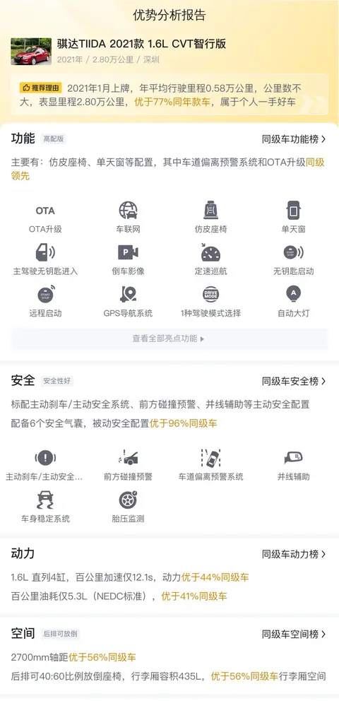 综上所述的新车含税价、用车成本、市场行情、优势分析、同款比价等数据仅供参考。在配置部分,因为二手车非标品,车辆可能会存在配置改装的情况,具体车况信息需要线下结合车辆实际情况进行综合参考。