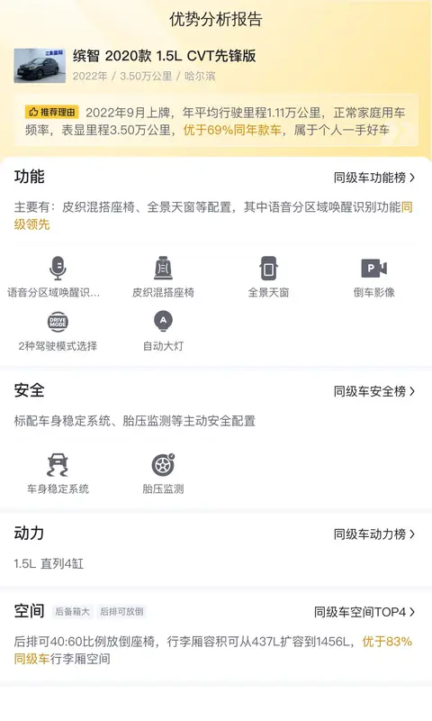 综上所述的新车含税价、用车成本、市场行情、优势分析、同款比价等数据仅供参考。在配置部分,因为二手车非标品,车辆可能会存在配置改装的情况,具体车况信息需要线下结合车辆实际情况进行综合参考。