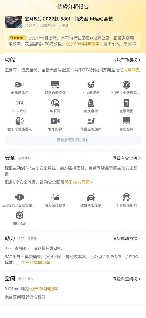 综上所述的新车含税价、用车成本、市场行情、优势分析、同款比价等数据仅供参考。在配置部分,因为二手车非标品,车辆可能会存在配置改装的情况,具体车况信息需要线下结合车辆实际情况进行综合参考。