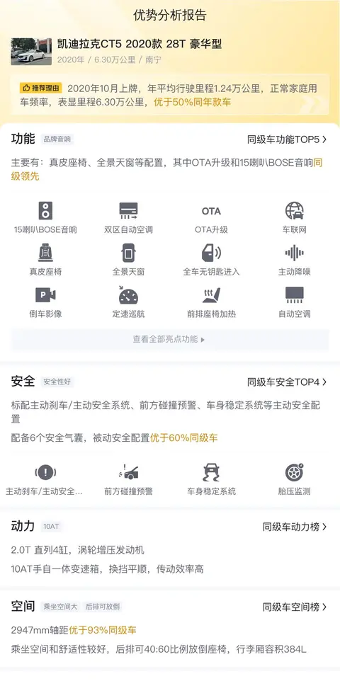 综上所述的新车含税价、用车成本、市场行情、优势分析、同款比价等数据仅供参考。在配置部分,因为二手车非标品,车辆可能会存在配置改装的情况,具体车况信息需要线下结合车辆实际情况进行综合参考。