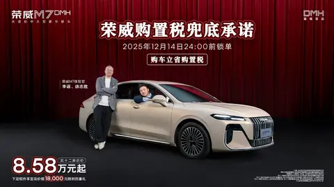 眼下,荣威 M7 DMH 购置税补贴限时返场,为消费者带来了实打实的万元让利。2025 年 12 月 28 日 24:00 前,在上汽荣威 APP 或小程序完成锁单,若因厂家客观原因无法享受 2025 年新能源免购置税政策,官方将全额兜底。这一承诺彻底打消了消费者的后顾之忧,让大家能够安心抢占政策红利。