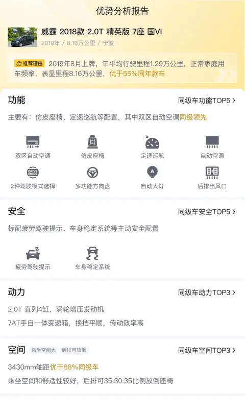 综上所述的新车含税价、用车成本、市场行情、优势分析、同款比价等数据仅供参考。在配置部分,因为二手车非标品,车辆可能会存在配置改装的情况,具体车况信息需要线下结合车辆实际情况进行综合参考。