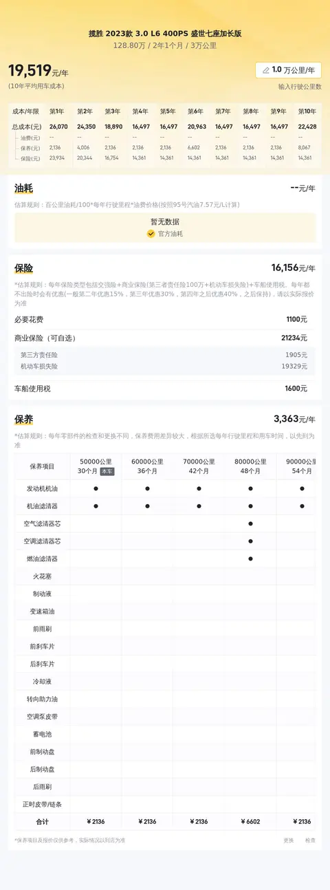 保险费用:年度保险费用预计在13,078元左右,这是基于过往数据的平均值,实际费用可能因保险公司政策和个人驾驶记录而有所波动。