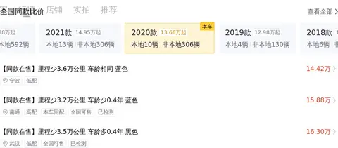 这辆车于2020年3月在广州上牌,至今行驶了12.9万公里,有过两次过户记录,如今这辆二手车报价为16.38万元。