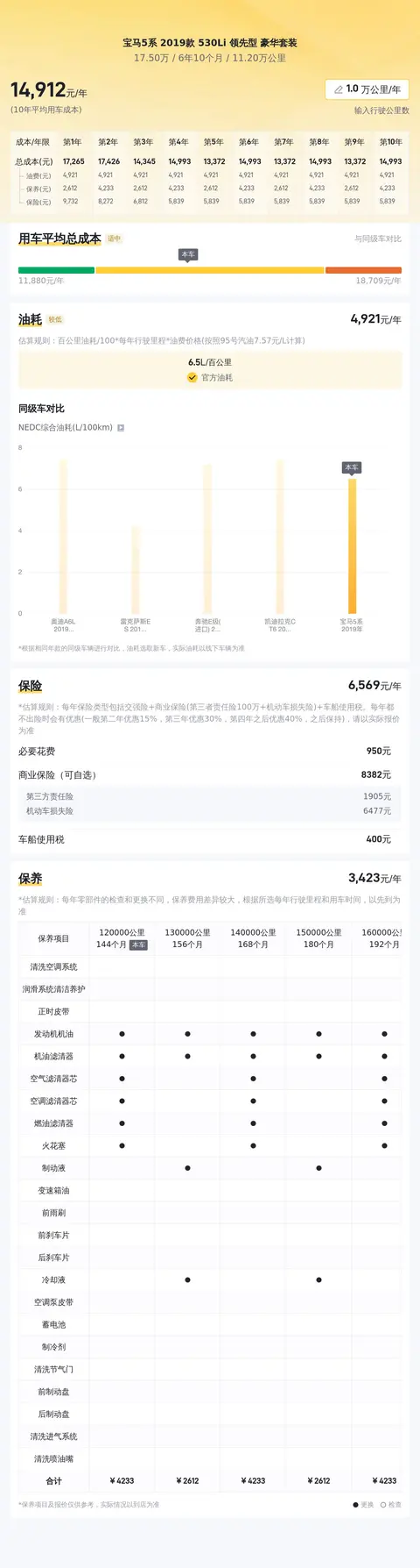 此外,我们估算了这款车的年均综合用车成本,大约为每年1.5万元左右,这项开支具体金额跟车主的驾驶习惯和行车环境有着直接关系。