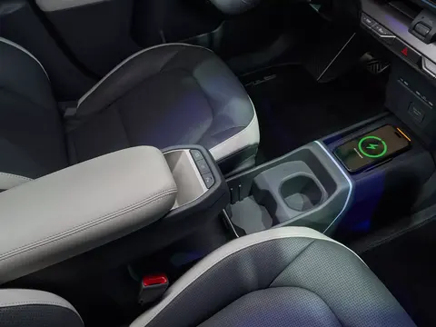 内饰方面,则是经典的双色配色搭配,贯穿式悬浮双连屏设计,整个内饰简洁又不失设计感。中控台下方设置有无线充电,物理按键设计在了中控扶手上。座椅也是双色的设计,并采用上下不同的拼接纹理,后排设置有两个座椅。行李箱空间达到403L。动力方面,新车搭载108千瓦的电机,WLTP工况续航里程分别为317km和448km,快充充电时间为30分钟。