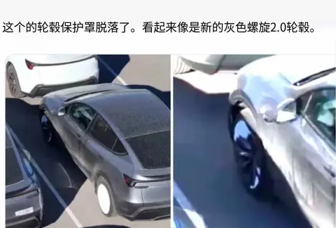 最近有人在德州工厂附近拍到几辆Model Y测试车,车尾贴着大块遮挡贴纸,轮毂保护套掉了,露出新款灰色轮毂,这轮毂叫Helix 2.0,是五辐放射纹路,看起来比现在那款更密实,风阻可能小一点,续航能多跑几公里,不是为了好看才设计的。