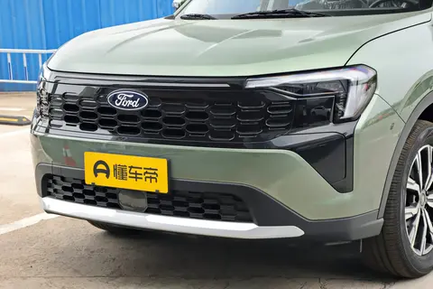 福特领睿EcoBoost 的外观整体走的是“度假风”设计路线,风格方正硬朗、车身宽大,同时细节上又比较J Z,属于那种一眼看上去就很有体量感、招人羡慕的家用SUV。前脸采用大尺寸贯通式黑曜石进气格栅,与左右L型大灯融为一体,搭配梯形熏黑前包围组件,整体凸显时尚动感。LED大灯和下方大梯形保险杠,车头显得很宽、很敦实,同时又有一定的运动感和野性张力。