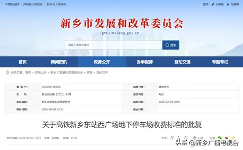 市政府转来新乡市城市管理局《关于对高铁站地下停车场收费管理实施政府定价的请示》(新城管〔2025〕106号)收悉。根据《河南省定价目录》(豫发改价调〔2022〕612号)和《新乡市机动车停放服务收费管理实施细则》(新发改收费〔2017〕549号)等文件规定,经价格调查、成本调查、合法性审查、集体审议、征求社会意见等程序,并报市政府同意,现对高铁新乡东站西广场地下停车场收费标准及相关事项批复如下: