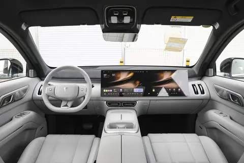 动力方面,这台顶配版是双电机,系统综合功率492匹,峰值扭矩637牛·米,零百加速5.9秒。对于一台2吨多重的大SUV,这个数据意味着什么?意味着在国道上超那些大货车,干脆利落,一脚下去动力就来,没有那种干吼不走的心虚感。电机的响应特性决定了它没有传统燃油车的降档和转速爬升过程,动力释放几乎零延迟。