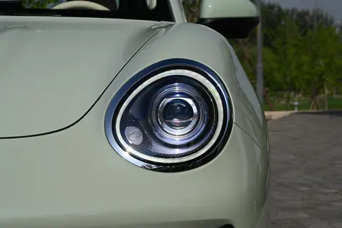 车轮是18英寸的,造型像八音盒机芯,铝合金材质搭配银色涂装,和车身复古风格很搭。车门把手、车窗饰条用亮银色点缀,看似不起眼的小细节,却让整车精致感提升不少,其实车子的好坏,差距就差在这些细节里。车尾和车头呼应,也是圆润风格,尾灯小巧可爱,点亮后效果柔和,后包围干净利落。全景天窗是加分项,天气好时打开遮阳帘,车内采光充足,春风吹进来,踏青的氛围感直接拉满。车身配色丰富且柔和,不管浅色系还是深色系,和春日花草、蓝天搭配都好看,开出去拍照特别出片。