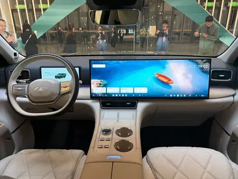 内饰设计则采用了当下新能源流行的风格,简洁的内饰搭配大尺寸中控屏,在屏幕组合上风云T11由一块30英寸的一体中控屏+10.25英寸仪表屏+17.3英寸后排娱乐屏组成,30英寸的6K一体中控屏也做到了全系标配,三块屏幕满足了车内控制以及娱乐所需要的功能,同时风云T11还保留了大量的实体按键,除后视镜调节外,驾驶模式、空调温度以及风量都可以通过实体按键调节。