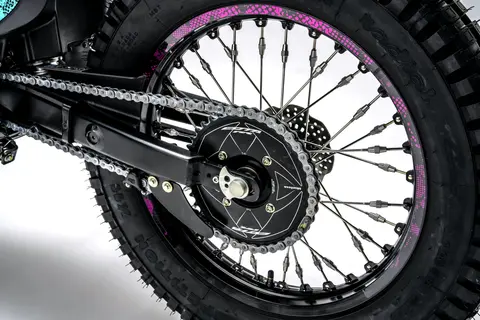 车体方面,采用一副铝合金制的双翼樑式车架,叉芯口径为 39 mm、但具有更长行程的 Showa 正立式前叉,Pro-Link 多连杆联接的单筒式后减震,铝制的油箱,直径为前 21、后 18 英寸的轻量化铝制轮毂,全车整备重量为 169 磅(约 76.7 公斤)。