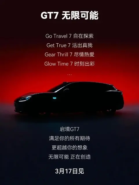大家好,我是阿明小白聊车。近期新能源汽车市场持续活跃,个性化车型越来越受关注,猎装轿跑凭借造型与实用兼顾的特点,成为不少用户的关注对象。3月9日,启境汽车官方发布信息,旗下首款智能猎装轿跑正式定名为启境GT7(图片),并将于3月17日正式亮相,这款新车的信息公布后,引发了不少车友的讨论。