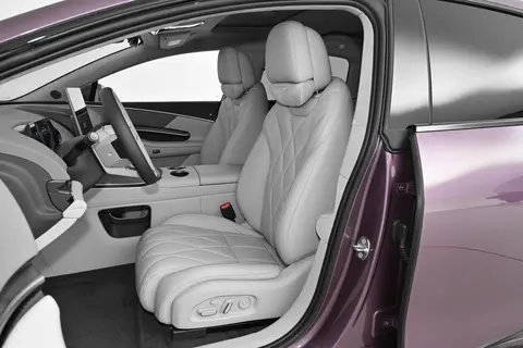 座椅的配置与材质根据不同版本有着明显的区分,智能豪华版与智慧豪华版的座椅采用仿皮材质,材质的触感细腻,同时具备不错的耐磨性,能够适应日常的使用场景;智慧尊贵版与旗舰版的座椅则升级为Nappa真皮材质,质感上更为温润,触摸体验更好。座椅功能方面,前排座椅全系配备了加热与通风功能,这两项功能在冬季与夏季的使用中实用性较强,能够提升不同季节的乘坐舒适度。座椅的填充物软硬适中,侧向的支撑性设计合理,在车辆过弯时,能够对驾乘者的身体形成一定的包裹,减少身体的侧倾,提升乘坐的稳定性。后排座椅的加热功能从尊贵版开始配备,长途乘坐过程中,对大腿的承托效果良好,能够缓解长途乘坐带来的疲劳感。旗舰版车型还配备了零重力座椅,座椅躺倒之后的姿态能够有效降低对腰背的压力,进一步提升了后排的乘坐舒适性。智慧尊贵版与旗舰版的后排还配备了7.9英寸的控制娱乐屏,后排乘客可以通过该屏幕控制车内的多媒体系统以及部分车辆设置,提升了后排乘坐的互动性与便利性。旗舰版还标配了车载冰箱,支持冷藏与冷冻两种功能,在夏季出行时,能够方便的存放饮料等物品,提升了用车的体验感。车内配备了多层隔音玻璃,对行驶过程中的路噪与风噪有着不错的隔绝效果,能够有效降低车内的噪音,营造出安静的车内环境。抬头显示系统(HUD)为旗舰版的标配功能,投射尺寸达到27英寸,能够将车速、导航等关键的行车信息投射在驾驶者的前方视野中,减少了驾驶者低头查看仪表的频率,让驾驶过程更专注,提升了驾驶的安全性。