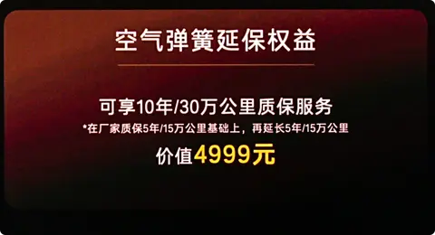 第三个是空气弹簧延保权益,价值4999元。行业里空悬质保普遍是5年15万公里,铂智7限时追加5年15万公里,变成10年30万公里。这个权益其实挺关键的。很多人喜欢空悬但不敢买,就是怕几年后坏了修起来贵。现在丰田给你兜底10年,这层顾虑基本可以打消了。